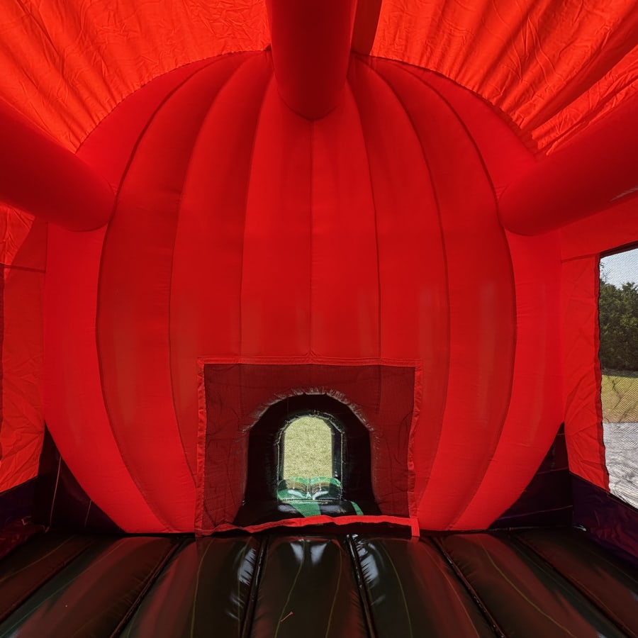 - Stunning Pumpkin Design: Featuring a giant, smiling Jack o’ Lantern, this bounce house stands out at any autumn celebration or Halloween party.