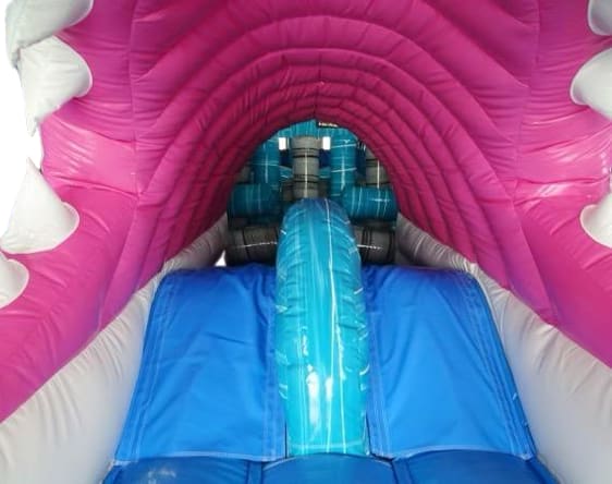 Step through the intimidating shark mouth entrance and navigate your way through the waves around the top. The adrenaline rush continues as you race to the finish line and slide down into the inflatable pool for a refreshing splashdown!
