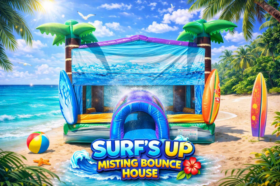 Whether you're hosting a birthday party, family gathering, or just want to add some fun to your backyard, the Surfs Up Misting Bounce House is the perfect choice. Available for delivery in Manhattan, Joliet, Elwood, and surrounding areas, you can easily bring the excitement right to your doorstep. 🚚