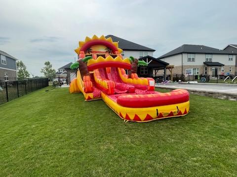 Available for delivery in Crest Hill, Naperville, Plainfield, Shorewood, Oswego, and more, this inflatable slide will be the highlight of your party. 🎉 Make a splash and create unforgettable memories with the 18 Ft Summer Sizzle Hybrid Slide!