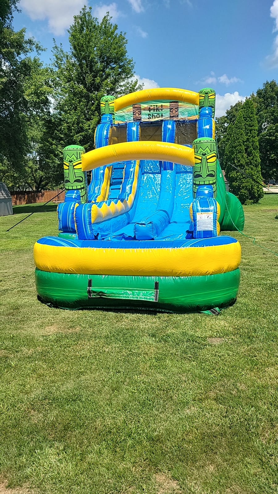 Perfect for hot summer days, this water slide comes in vibrant Green Marble, Blue Marble, and Yellow colors, adding a tropical touch to your outdoor events. The whimsical Tiki-inspired design will transport you to a fun-filled paradise right in your own backyard. 🎉🌺