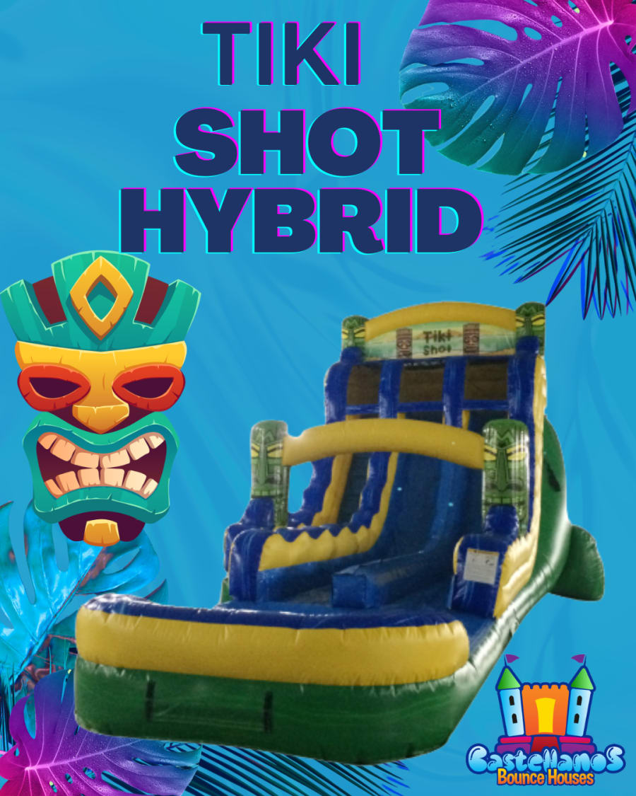 Don't miss out on the opportunity to create unforgettable memories with this amazing water slide. Book now and get ready to make a splash with the 18ft Tiki Shot Hybrid Water Slide!