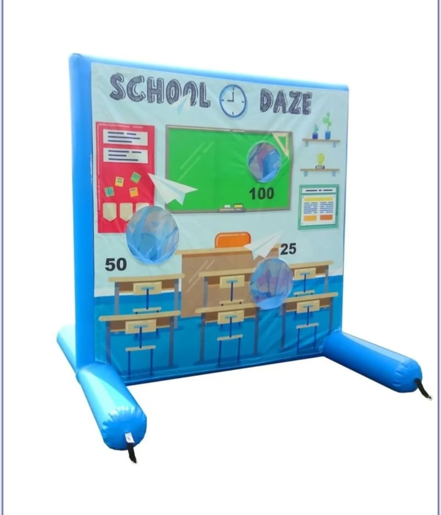 Get ready for some fun and excitement with our School Daze Toss game 🎯! This blue frame free-standing game is perfect for school-themed parties, events, or just a casual day of play. With its school desk and teacher desk design, you'll feel like you're right in the classroom 📚.