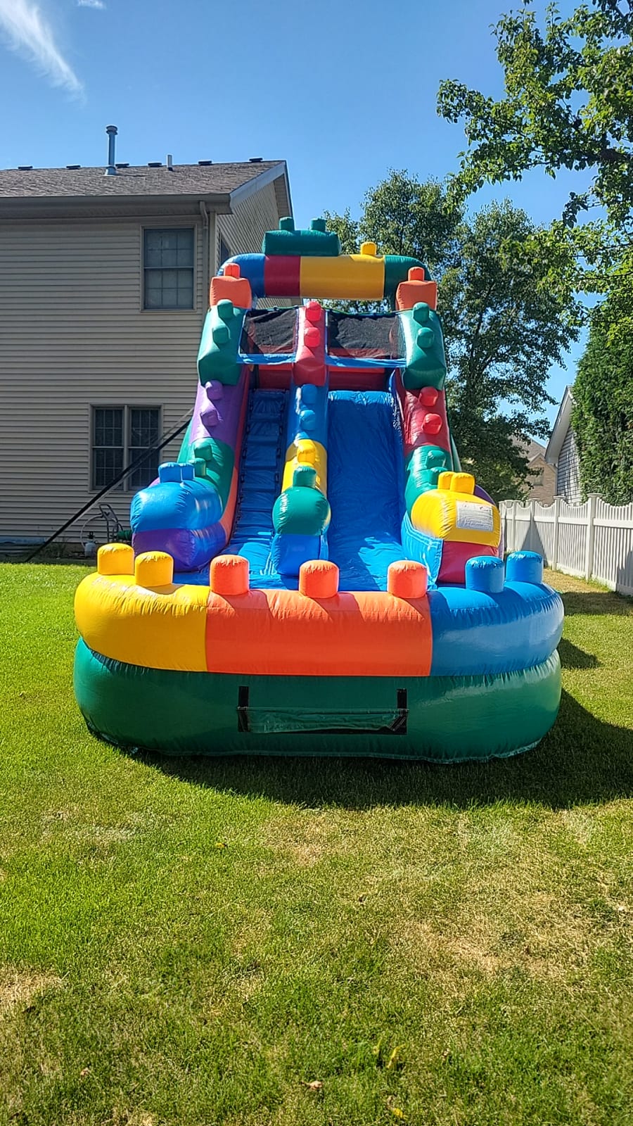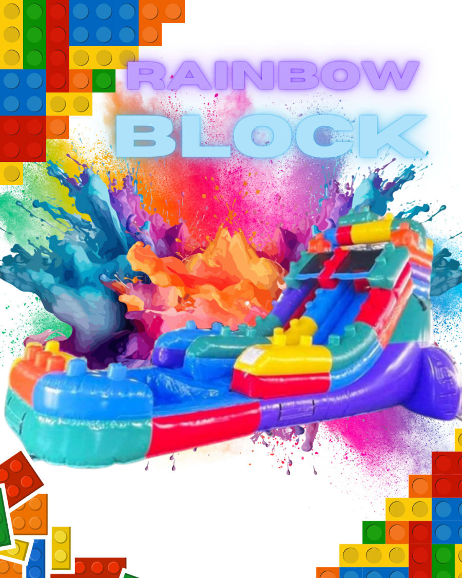 Introducing the 16ft Rainbow Block Slide - A Colorful Splash of Fun!